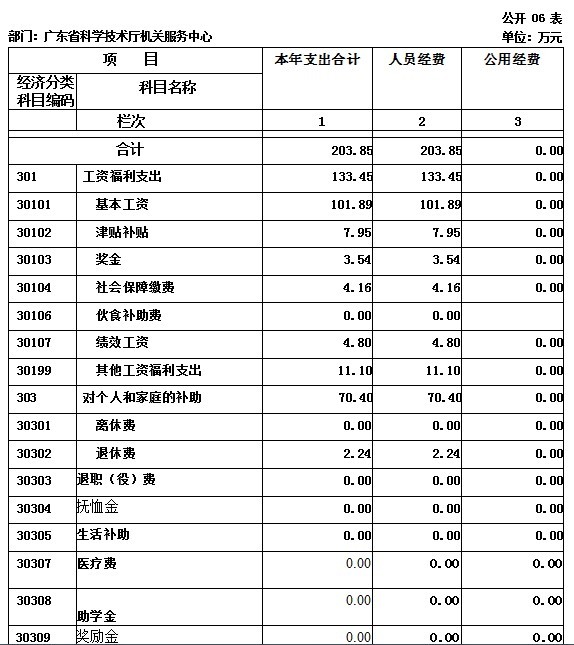 财政拨款支出中,基本支出203.85万元,占本年财政拨款支出的 32.67%,其中:工资福利支出133.45万元,对个人和家庭的补助 70.40万元, 主要是维持机构正常运转及事业编制内人员福利待遇。