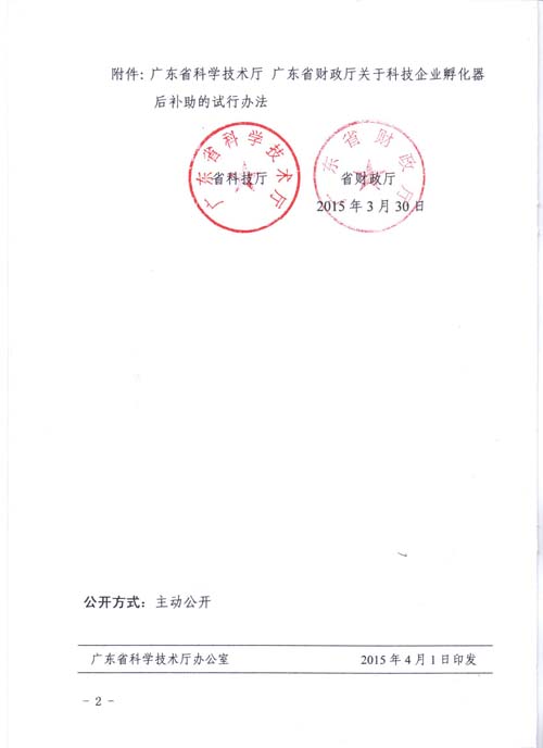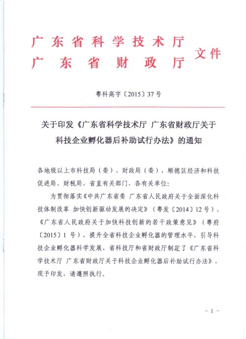 1.关于印发《线上娱乐城 广东省财政厅关于科技企业孵化器、众创空间后补助试行办法(修订)》的通知