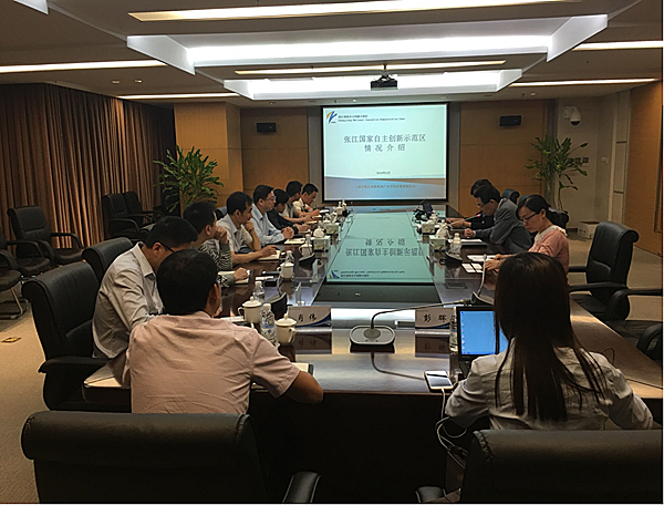 张江自创区管委会候劲副主任、上海自贸区管委会对外联络局王樱局长分别介绍了张江自创区建设和双自联动方面的相关情况。张江自创区围绕集成电路、生物医药、科技文化融合等优势产业,推进体制机制创新,在检验检疫便利通关、集成电路保税监管、人才建设等方面积极进行政策探索,成效显著。座谈会上,调研组还重点就《关于加快推进中国(上海)自由贸易试验区和上海张江国家自主创新示范区联动发展的实施方案》的具体内容和起草过程,进行了深入的交流与探讨。