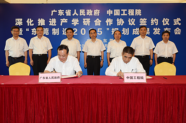 为深入实施创新驱动发展战略,全面贯彻落实全国科技创新大会精神,广东省政府与中国工程院决定在“十二五”全面战略合作期间取得显著成效的基础上,进一步完善省院会商机制,重点围绕经济社会发展重大工程建设、高技术产业发展战略、主导产业和支柱产业发展、高水平大学、高水平理工科大学、新型研发机构、重大创新平台、国际科技合作平台、珠三角国家自主创新示范区、重大人才工程等方面深化产学研合作,为广东完善开放型区域创新体系、加快建设创新驱动发展先行省提供强有力的支撑。