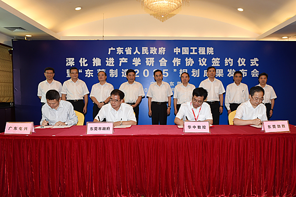 会上,中国工程院制造业研究室主任屈贤明发布了“东莞制造2025”规划研究报告。东莞市政府与华中数控、东莞劲胜、广东屯兴共同签署了《东莞市智能制造试点示范应用推广合作框架协议》。