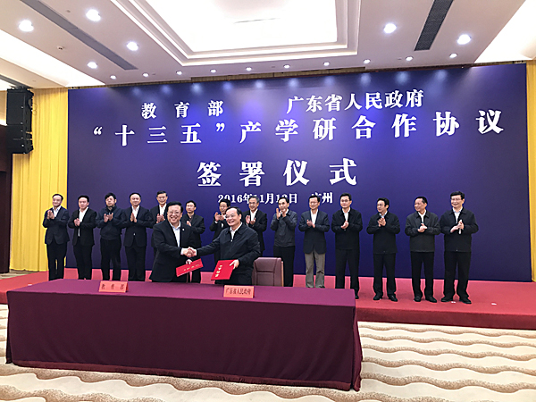 《教育部 广东省人民政府“十三五”产学研合作协议》在广州签署