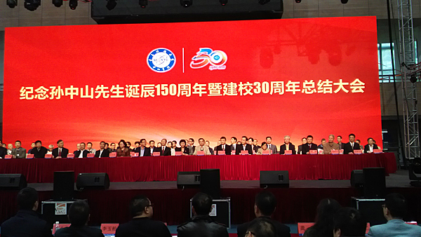 11月11日下午,电子科技大学中山学院在本校体育馆举行纪念孙中山先生诞辰150周年暨建校30周年总结大会,周木堂副巡视员应邀出席了大会。来自省直有关部门、中山市委市政府、电子科技大学、学校主要捐资人、各兄弟高校及合作高校代表,以及来自全国各地的近千名校友和全体师生员工代表共计5000余人欢聚一堂,共同缅怀革命先驱孙中山先生,总结30年来的办学经验,推动学校踏上建设高水平应用型大学的新征程。