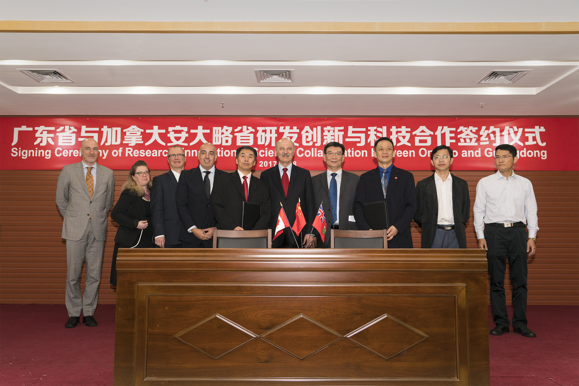 会后,双方在五楼报告厅共同见证了广东省与加拿大安大略省研发创新与科技合作项目的签约。4项中加企业家代表在现场签署项目合作协议,内容包括智能制造、节能环保等。