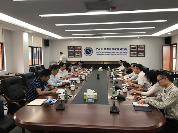 5月8日,线上娱乐城厅党组成员杨军副厅长带队前往中山大学粤港澳发展研究院进行调研,双方就加强粤港澳大湾区科技创新合作的研究以及科技智库建设进行了座谈。
