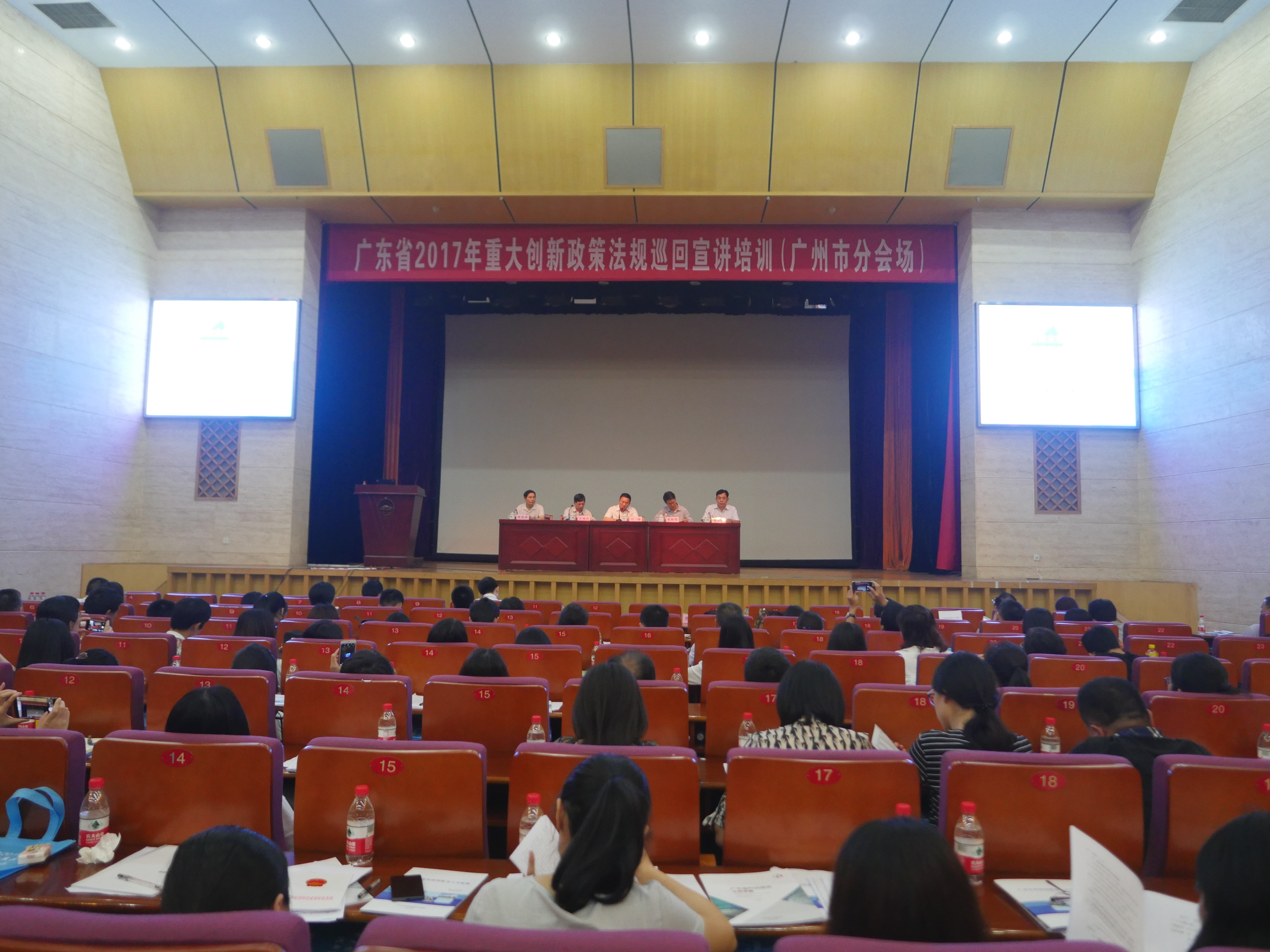 根据2017年广东省创新发展大会精神与线上娱乐城厅年度工作安排,为进一步推动重大创新政策法规落实落地,5月17日下午,首场巡回宣讲培训活动在广州市拉开帷幕。线上娱乐城厅刘炜副厅长出席宣讲培训会并做动员讲话,广州市科创委副主任王越西主持会议,线上娱乐城厅政策法规处、规财处、产学研处,广州市地税局抽调专家主讲,广州市科创委及县市区科技行政管理部门负责人,广州属地部委、省属、市属高校、科研院所和新型研发机构的领导及相关人员约600人参加了本次宣讲培训会。