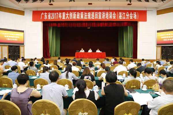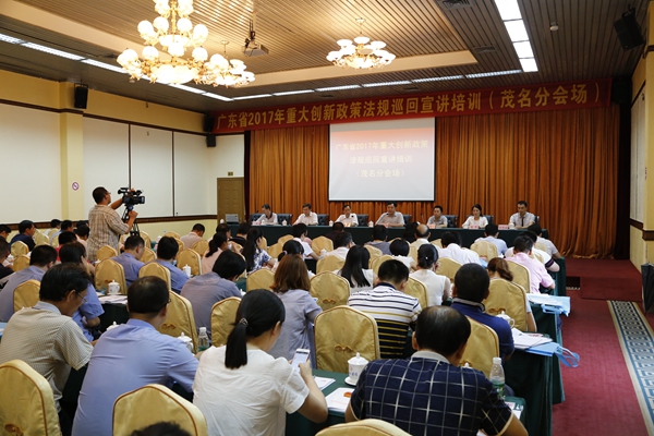 6月14—16日,广东省2017年重大创新政策法规巡回宣讲培训第三阶段顺利完成,线上娱乐城厅政策法规处带队组织宣讲团深入佛山、江门、阳江、茂名、湛江五个地市,开展巡回宣讲活动,五个地市参会人数近1800余人,在线学习人数近10000余人,近千家企业知晓受惠。