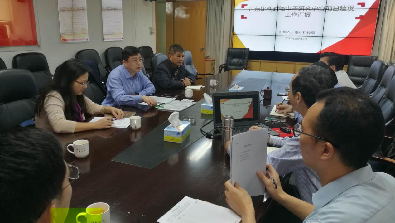 2017年10月17日,杨军副厅长带队赴惠州市调研比利时微电子研究中心建设情况。
