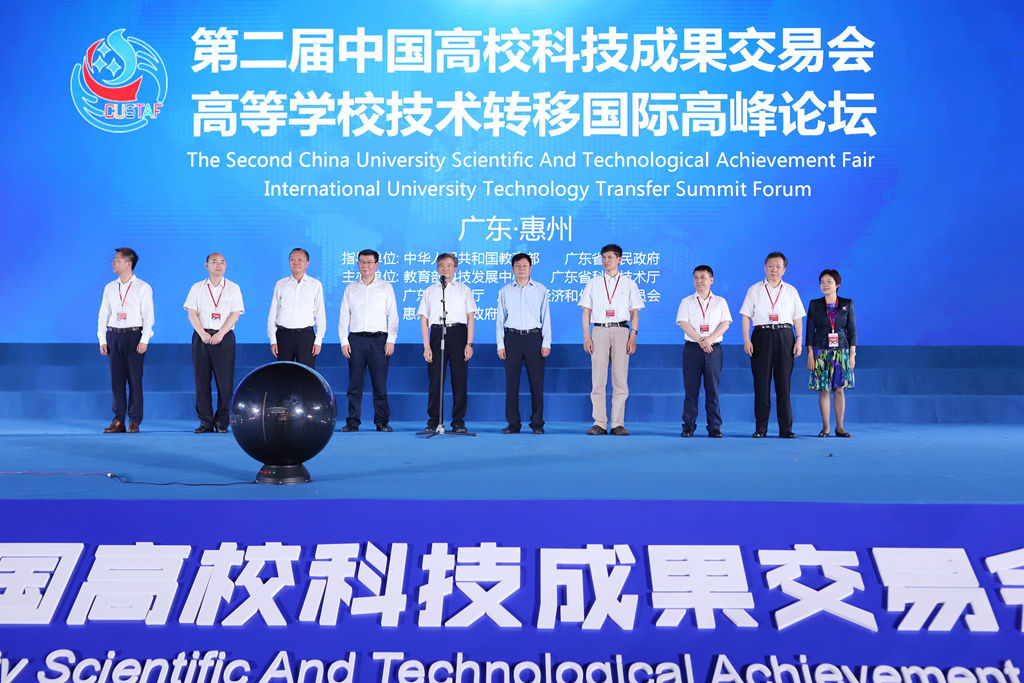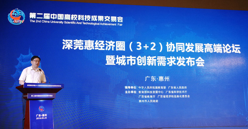 由教育部和广东省人民政府作为指导单位,我厅和教育部科技发展中心、广东省教育厅、广东省经信委、惠州市人民政府共同主办的第二届中国高校科技成果交易会(简称“第二届科交会”)于5月25-27日在惠州举行。全国政协原副主席罗富和,教育部党组成员、副部长杜占元,广东省人民政府副省长黄宁生等领导出席了25日上午举行的开幕式,并共同见证了国际科教协同创新联合体合作备忘录签约、共建清洁能源实验室战略合作框架协议签约、教育部“潼湖•大学创新园”首批入驻大学签约等签约活动。瑞典皇家科学院院士、诺贝尔奖评审专家特尼•普尔茨等多位海外权威学者,十多位“两院”院士,教育部科技司、教育管理信息中心,广东省直有关单位,国内外有关大学校长和代表,惠州市、蓝火计划实施城市、科交会协办城市领导,以及企业代表、技术转移机构代表、金融投资机构代表等约1100人参加了开幕活动。我厅厅长王瑞军代表主办单位出席了开幕式。