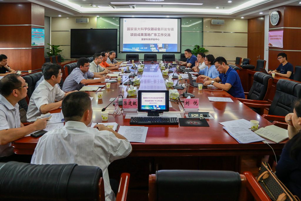 杨军副厅长主持召开交流会。会上,杨军副厅长对科技部评估中心一行到访我厅表示热烈欢迎,也对各与会单位给予国家重大科学仪器设备成果落地工作的支持表示感谢,提出希望能够以部、省、市联动合作形式,探讨以园区整体承接国家重大科技成果的模式,寻求部省合作新机制、新体制,为广东有效承接国家优势创新资源,打造战略新兴产业营造新的经济增长点提供新鲜经验和典型范例。希望通过此次交流,部、省、市在推进重大科学仪器设备成果落地广东事宜上达成初步共识并促成尽快组织落地。