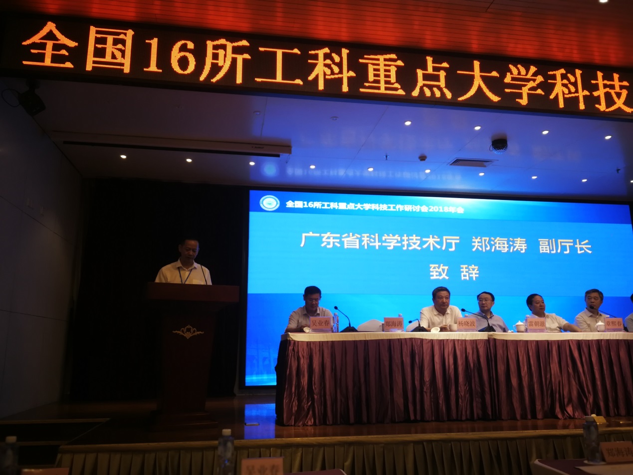 7月28日,由华南理工大学、重庆大学、华中科技大学、四川大学、电子科技大学共同主办的2018年全国十六所工科重点大学科技工作研讨会在广州召开。本届研讨会以“深化科教融合、强化创新驱动,支撑‘双一流’建设”为主题,来自北京大学、清华大学、浙江大学、上海交通大学、哈尔滨工业大学、同济大学、电子科技大学等全国27所重点大学的校领导、科研院、产业技术研究的120多名科技管理工作的负责同志参加了研讨会。教育部科技司司长雷朝滋、广东线上娱乐城厅副厅长郑海涛、广东省教育厅副巡视员胡振敏等领导应邀出席会议。